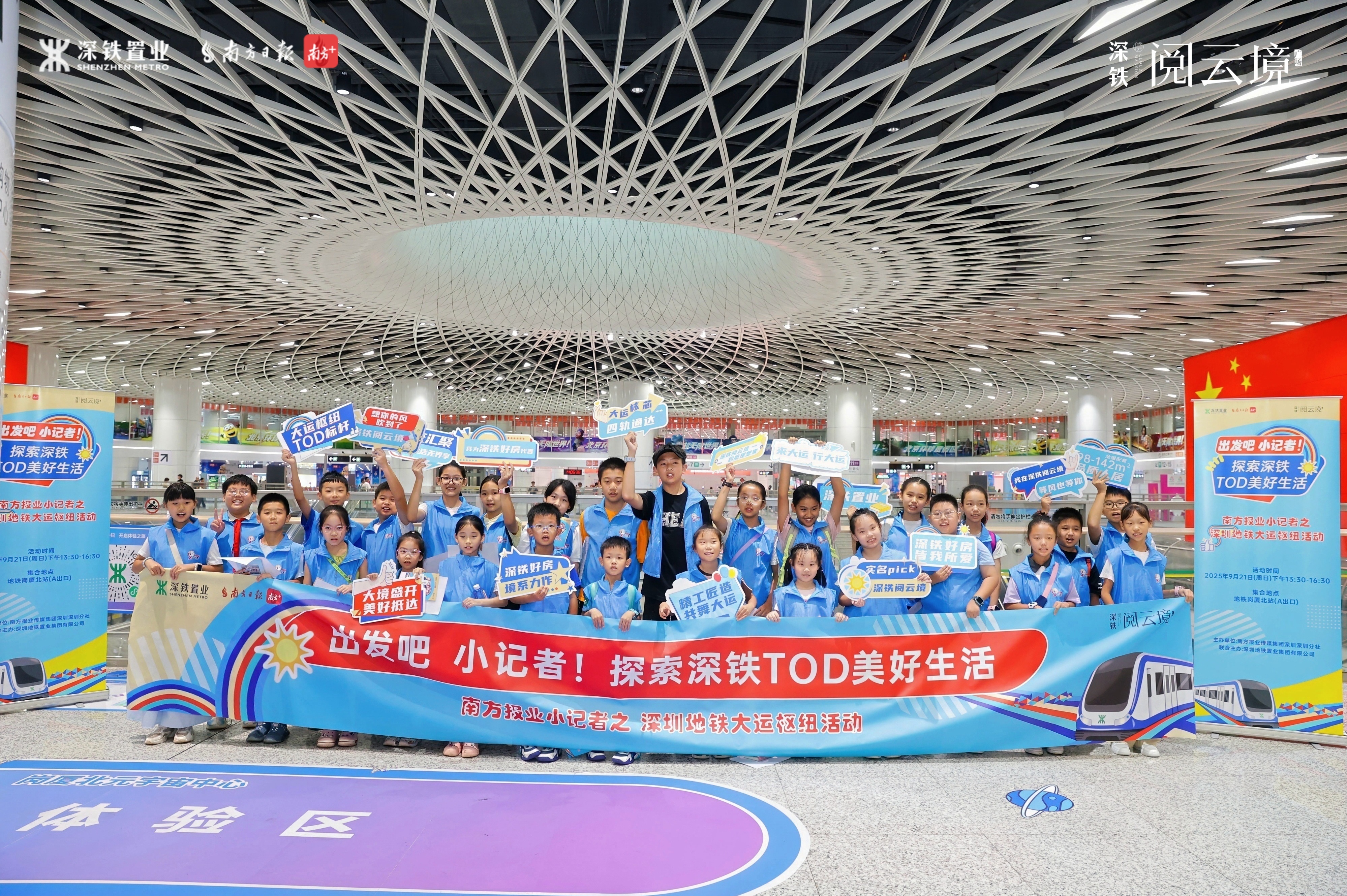9月21日,由南方报业集团深圳分社携手深铁置业联合打造的“出发吧,小记者!探索体验深铁TOD 美好生活”研学活动在深圳举行,约30组中小学生家庭走进大运枢纽与深铁阅云境项目,以青少年视角感受“轨道+物业”模式带来的生活改变。